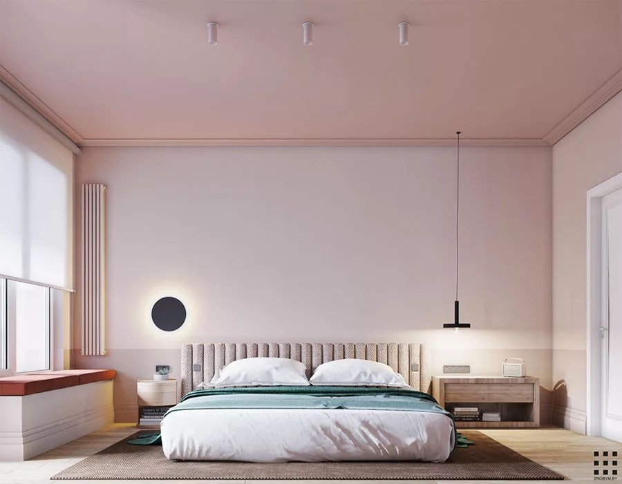 Come arredare una camera da letto rosa antico e grigio.